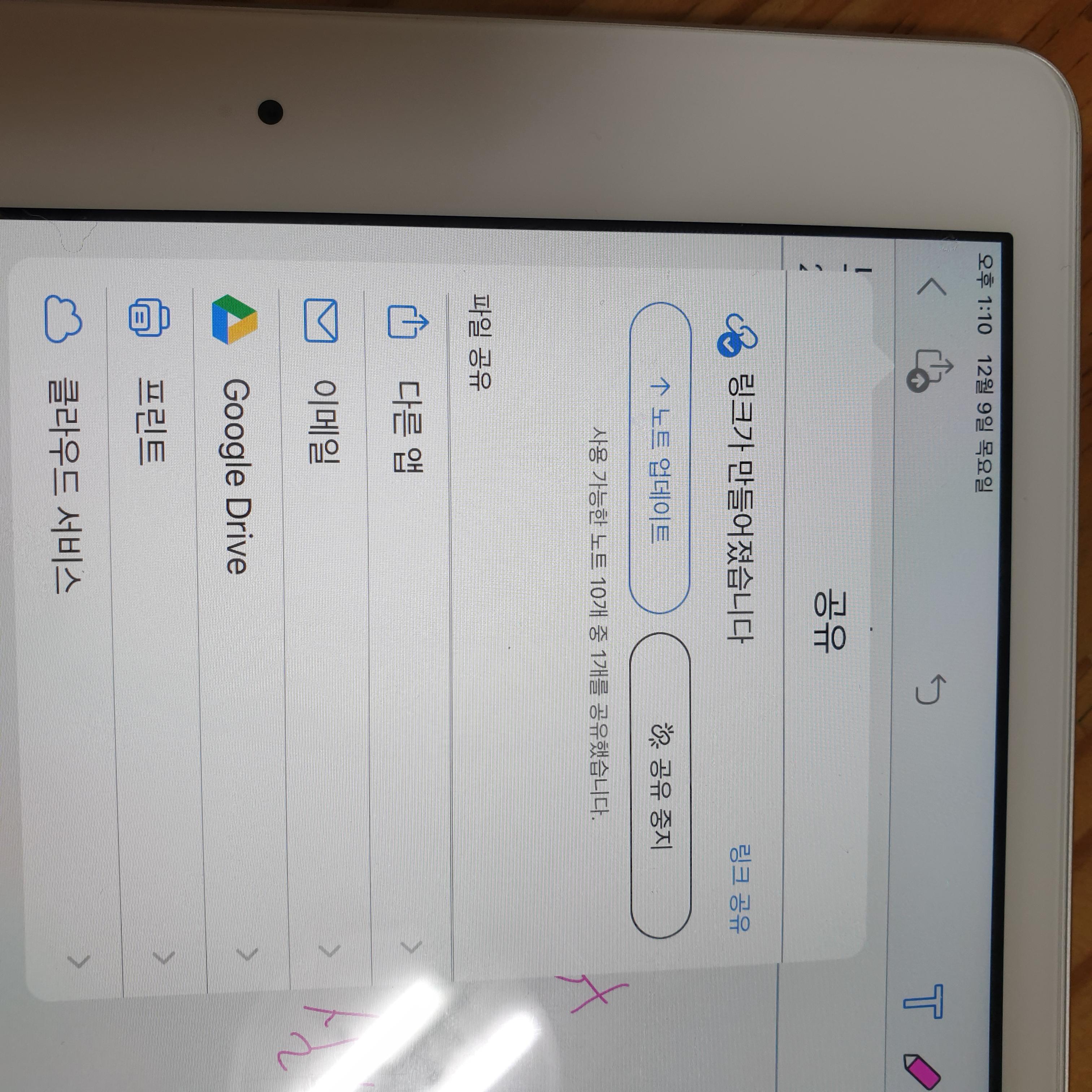 2. 굿노트는 아이클라우드가 로그인 된 기기에서만 확인할 수 있었는데 노타빌리티는 링크로 공유하기 때문에 갤럭시로도 노타빌리티의 필기를 볼 수 있다