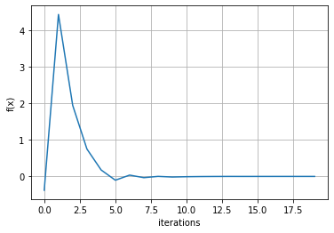 print("x0 = ", c[itr-1], "f(x0) = ", f(c[-1]), "iterations = ", itr)