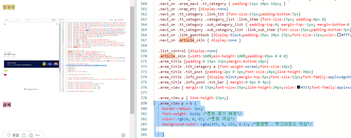 b태그 스타일을 형광펜으로 쓰려고 했는데 태그 이름이 아닌 건지 안 됨
