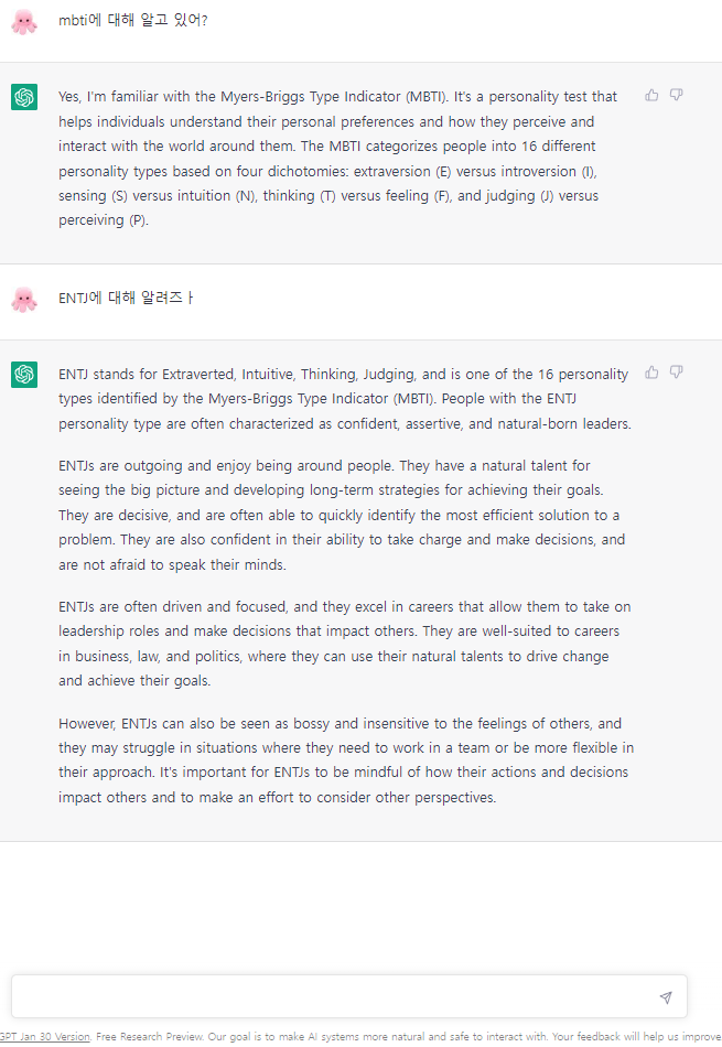MBTI 얘기도 알고 있다