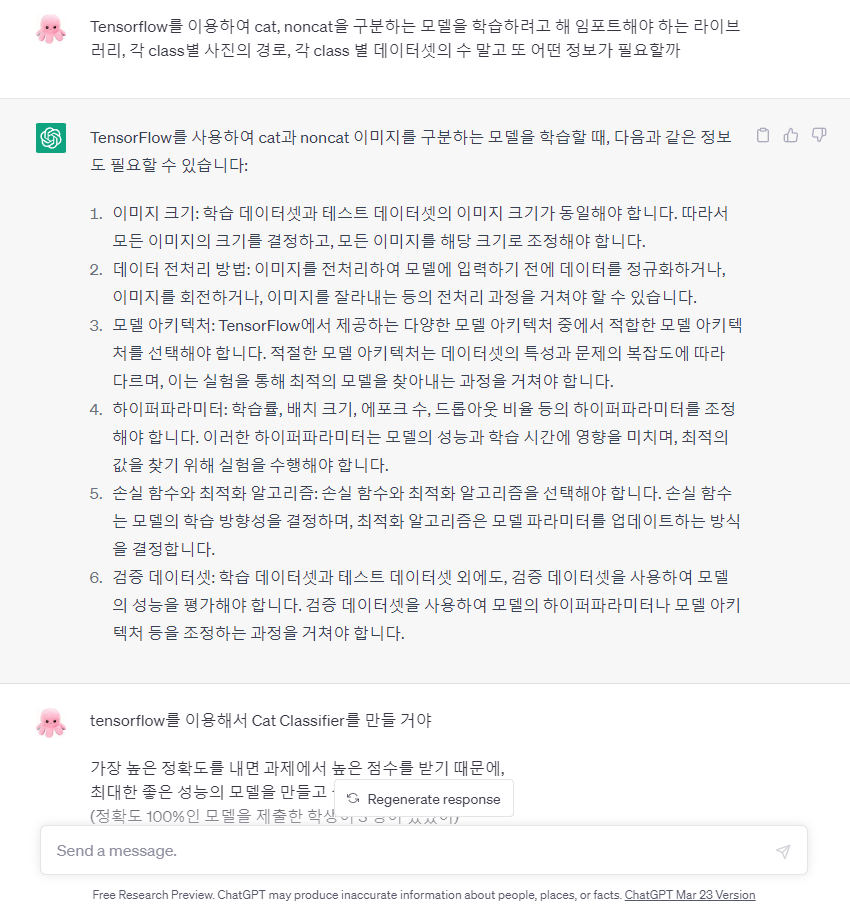ChatGPT로 Cats vs NonCats Classifier 만들기 본문