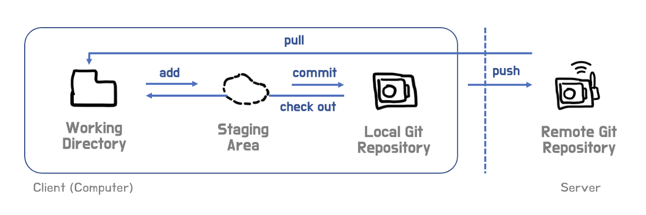 작업영역은 실제 소스코드를 수정하는 공간 = 로컬 PC의 폴더와 파일