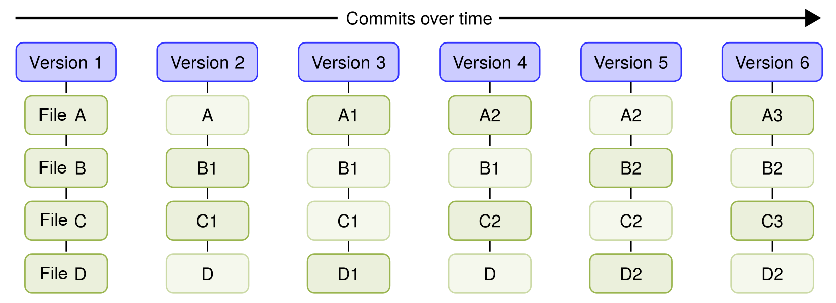 다른 버전 제어 시스템 VCS와 달리, 파일이 변경되지 않으면 추적하지 않는다