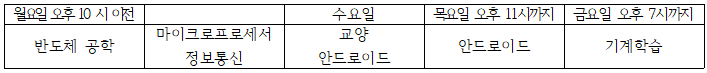 1. 요일 당 공부할 수 있는 과목을 정한다.