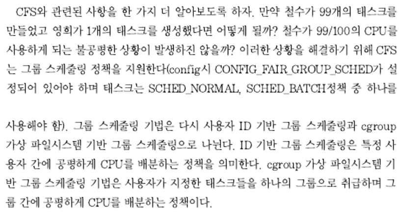 리눅스가 일반 테스크를 위해 사용하고 있는 스케줄링 기법은 CFS(Completely Fair Scheduler)