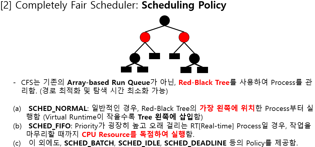 - 일반 테스크에 사용되는 정책: SCHED_NORMAL, SCHED_IDLE, SCHED_BATCH