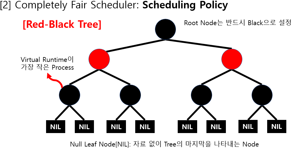 > 이 트리에서 가장 좌측에 위치한 테스크 = vruntime 값이 가장 작은 테스크 = 다음 스케줄링 대상